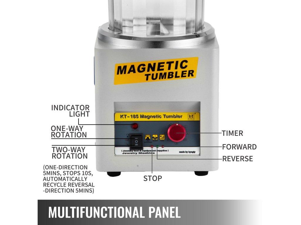 Az ékszerpolírozó görgő kétirányú forgást használ & időzítővel 2 és 30 perc között. A teljes méretű, világos gombokkal a gyors és egyszerű működés elérése érdekében, az ésszerű elrendezés és az intuitív és világos digitális kijelző növeli a mindennapi használat kényelmét.