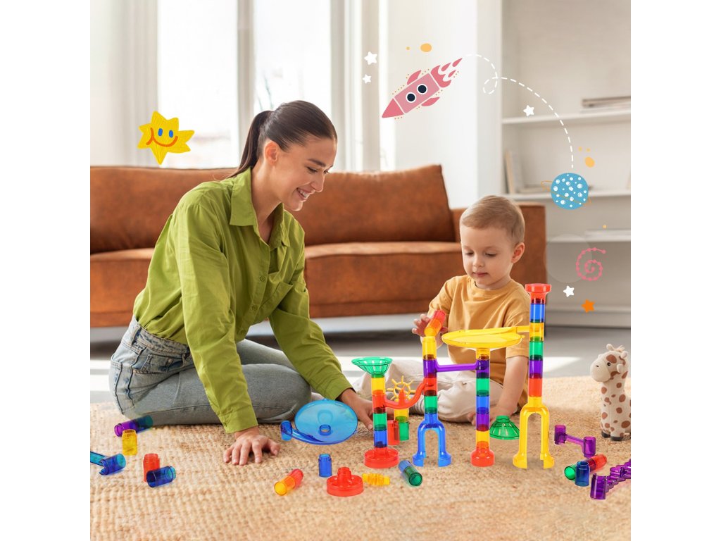 Ez a márványpálya készlet lehetővé teszi a gyermekek számára, hogy élvezzék a versenyzést és a saját alkotásaik építését. A gyerekek megtervezhetik saját márványlabirintus pályáikat, hogy ösztönözzék kreativitásukat és problémamegoldó készségüket. Miközben szórakoznak, segít fejleszteni agykapacitásukat és térbeli képzelőerejüket is. Tökéletes szórakozáshoz és tanuláshoz!