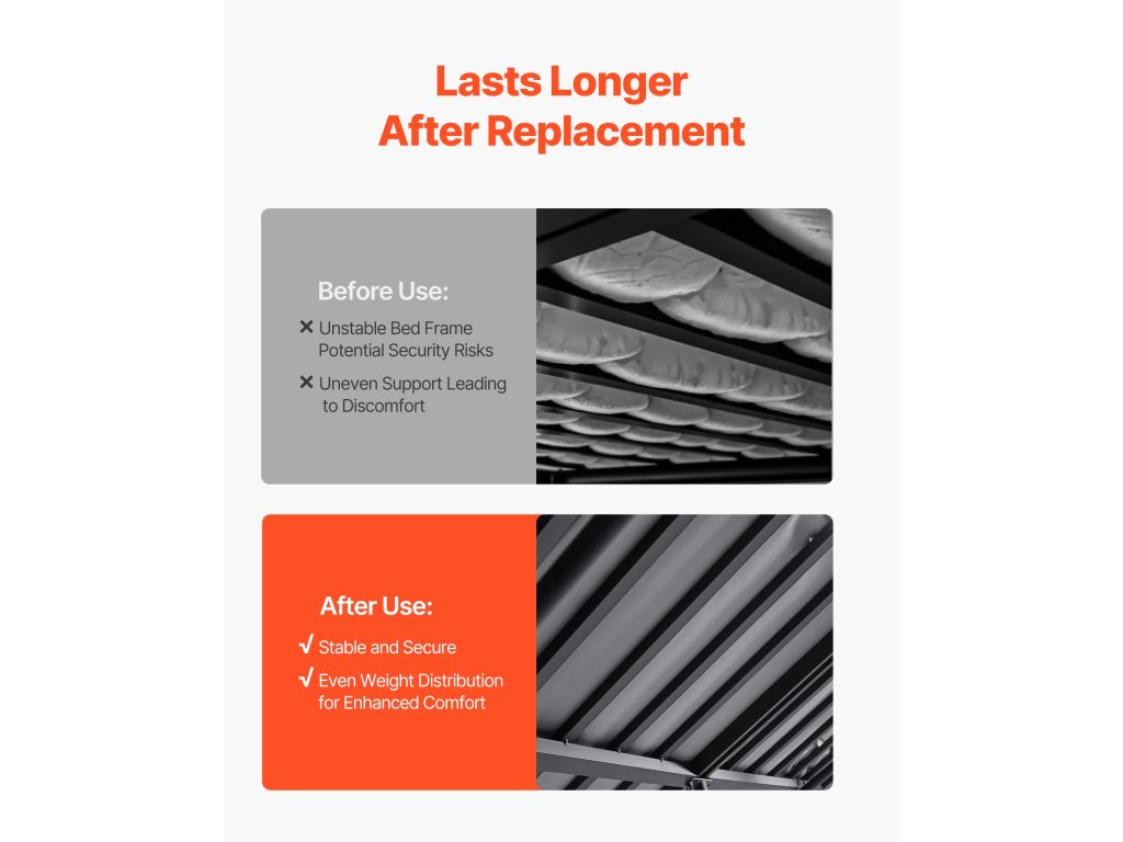 A pontos méreteknek köszönhetően ezek az ágytáblák illeszkednek az ágykerethez, kiküszöbölve a beszerelési problémákat vagy a méreteltéréseket.