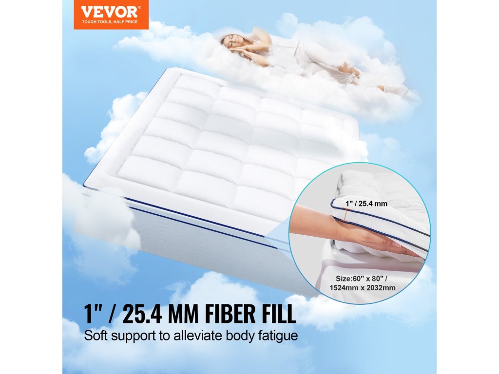 Matracvédő, rosttöltet, mosható, 25,4 mm, 1524 × 2032 mm
