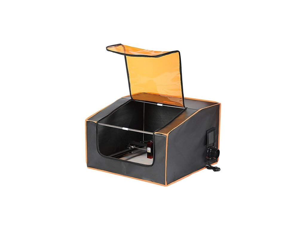 A zárt kialakítás hatékonyan elszigeteli a gravírozógép működése során keletkező füstöt, égési szagokat és zajt. Az elszívó ventilátor és az elszívócsatorna hatékonyan távolítja el a nem kívánt füstöt és szagokat. A burkolat anyagai hatékonyan csökkentik a zajt is. Távol tartja Önt a füsttől, a zajtól és a szúrós szagoktól, kényelmesebb és élvezetesebb gravírozási élményt nyújtva.