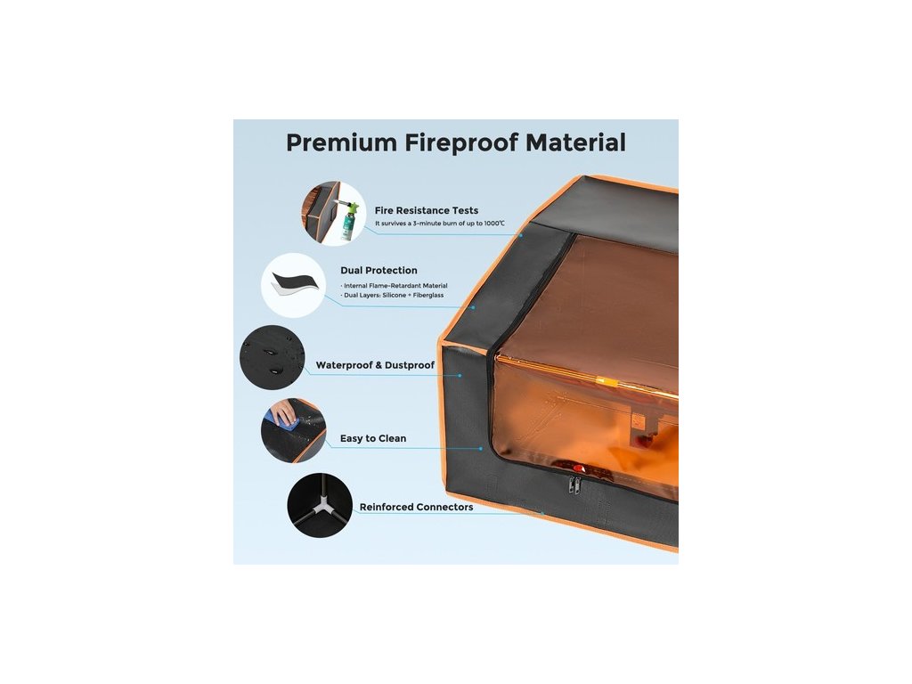 Az FC1 s lézergravírozógép burkolata tartósan készült, prémium üvegszálból és szilikonnal bevonva. Ellenáll a perzselő hőmérsékletnek akár 1000 ℃-ig, biztonságosabb gravírozási területet teremt, és megelőzi a tűzveszélyt.