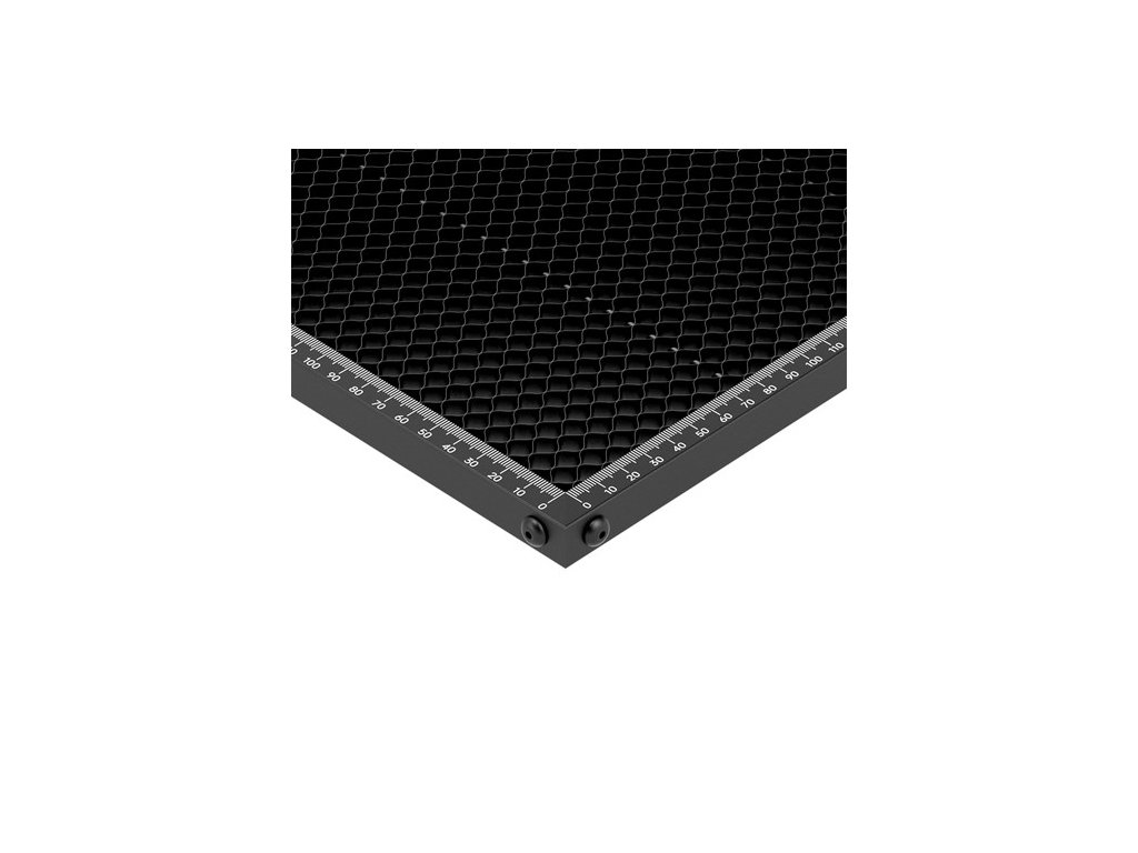 A munkaasztal védelme érdekében a készlethez tartozik egy, a panel méretének megfelelő (410 × 340 mm) alumínium hátlap. A méhsejtes ágy alá helyezve hatékonyan blokkolja a lézer behatolását. A készlet 10 műanyag szöget és 10 szilikon alátétet is tartalmaz, amelyek segítik az anyagok rögzítését és megakadályozzák az elmozdulást munka közben, a sarokvédők pedig a biztonságos kezelést és felállítást biztosítják.