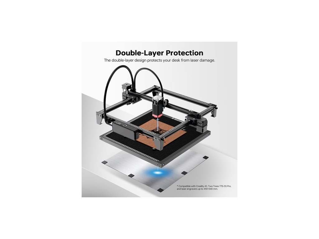 A Mecpow Bee lézerágy nem igényel összeszerelést - csak vegye ki a dobozból, és máris használhatja. Kompatibilis a legtöbb lézergravírozó géppel 410 × 340 mm-es méretig, beleértve a Creality A1 és a Two Trees TTS-55 Pro lézergépeket is. Akár kezdő, akár profi, ez a termék zökkenőmentes kiegészítője a gravírozó készletének.
