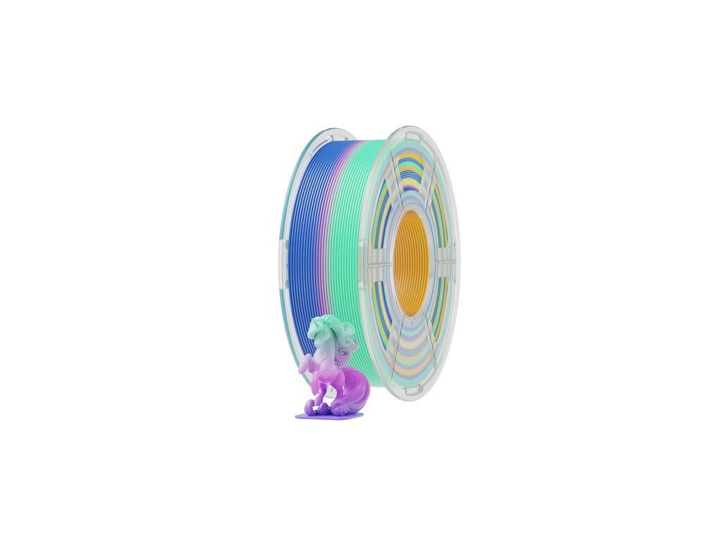 A biológiailag lebomló polimájsavból (PLA) készült PLA Rainbow fonal zöldebb és biztonságosabb megoldást kínál. Sima nyomtatási élményt nyújt, optimális teljesítményt nyújt 200-240°C-os fúvóka-hőmérsékleten és 50-60°C-os fűtött ágyhőmérsékleten.