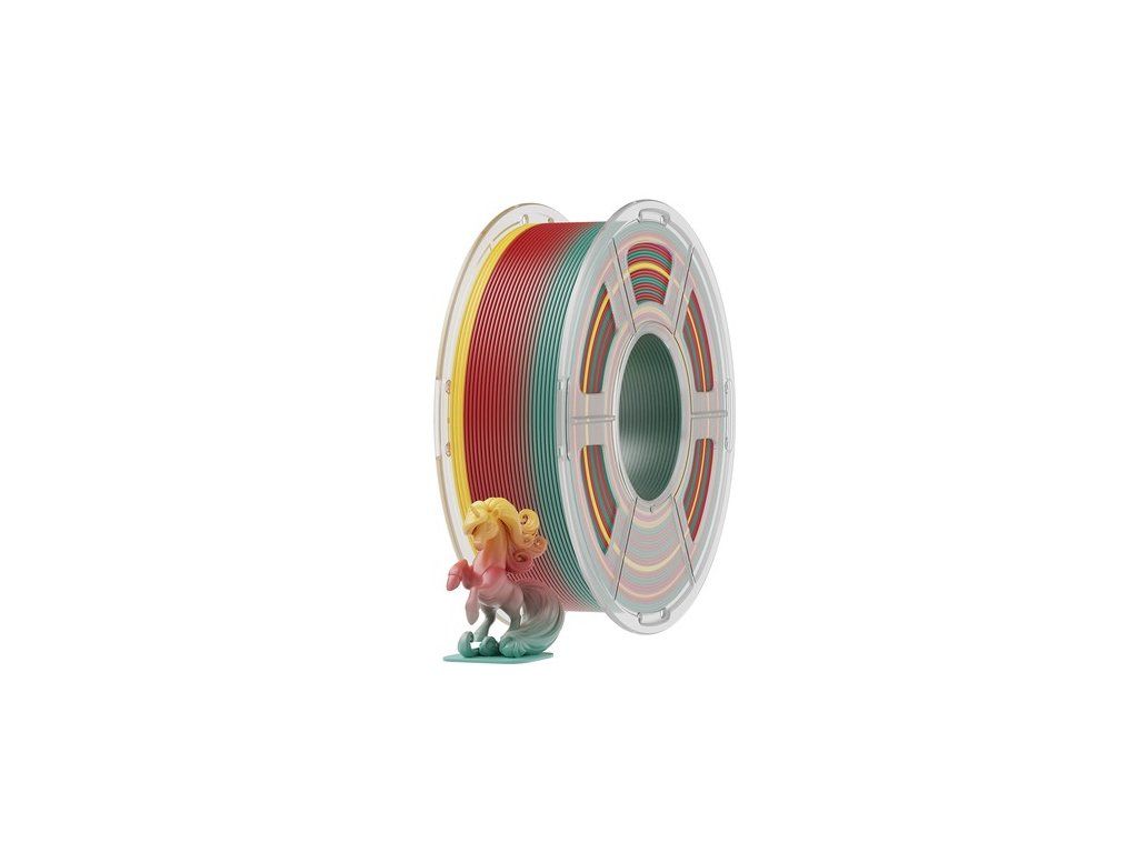 A biológiailag lebomló polimájsavból (PLA) készült PLA Rainbow fonal zöldebb és biztonságosabb megoldást kínál. Sima nyomtatási élményt nyújt, optimális teljesítményt nyújt 200-240°C-os fúvóka-hőmérsékleten és 50-60°C-os fűtött ágyhőmérsékleten.