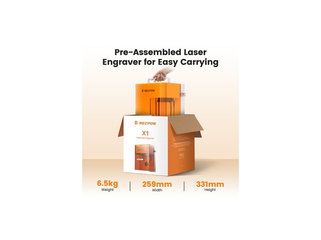 A Mecpow X1 Dual-Laser Engraver & Cutter (2W dióda + 10W infravörös lézer) egy innovatív asztali gép, amely két nagy teljesítményű lézert egyesít egy kompakt egységben, így páratlan sokoldalúságot kínál a legkülönbözőbb anyagok megmunkálásakor. Legyen szó hobbistáról, kisvállalkozóról, oktatóról vagy gyártóról, az X1 lehetővé teszi, hogy precízen és egyszerűen keltsen életre összetett terveket.