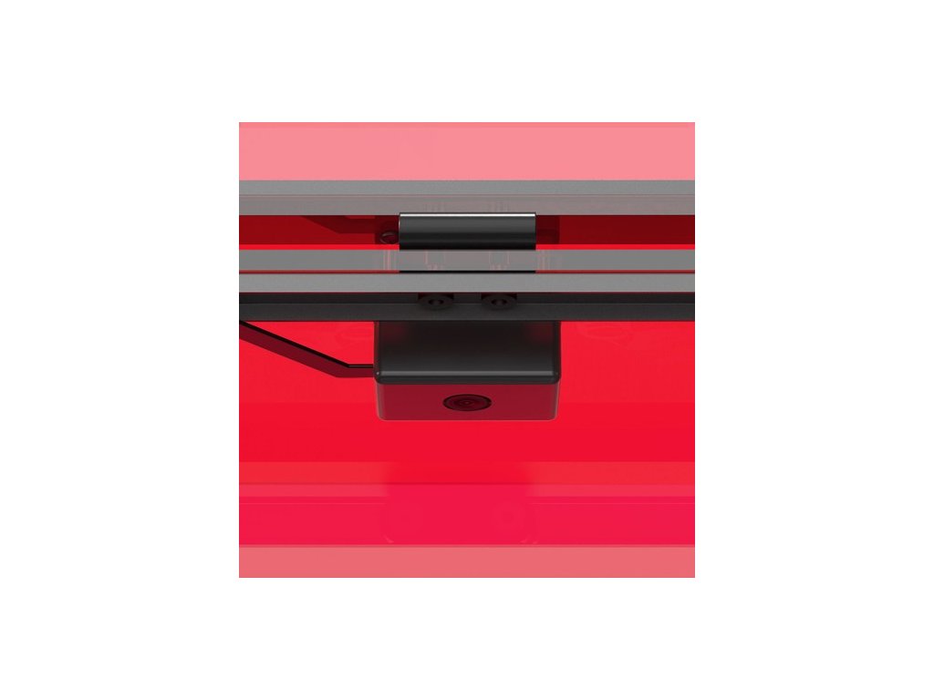 - A teljesen átlátszó piros burkolat lehetővé teszi, hogy a munkadarabok megmunkálását minden szögből megfigyelhesse.