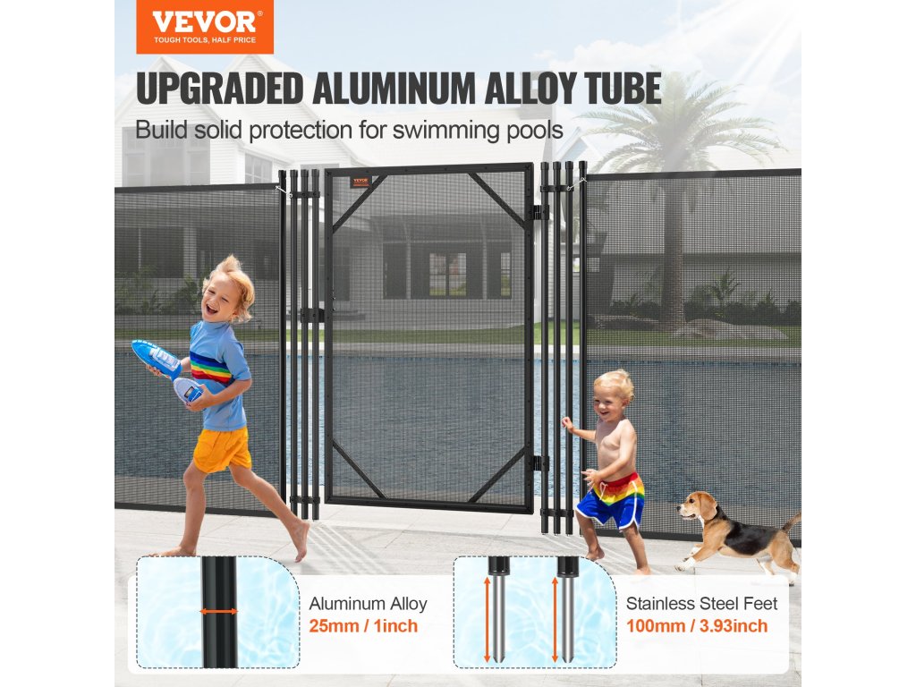 A négyszögletes alumíniumötvözetből készült csövekkel és rozsdamentes acél lábakkal megerősített medencekapunk kivételes korrózióállóságot és tartósságot garantál, és páratlan biztonságot nyújt.