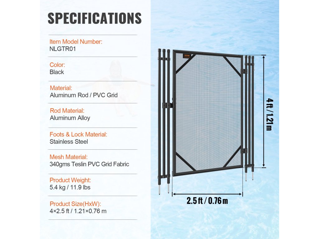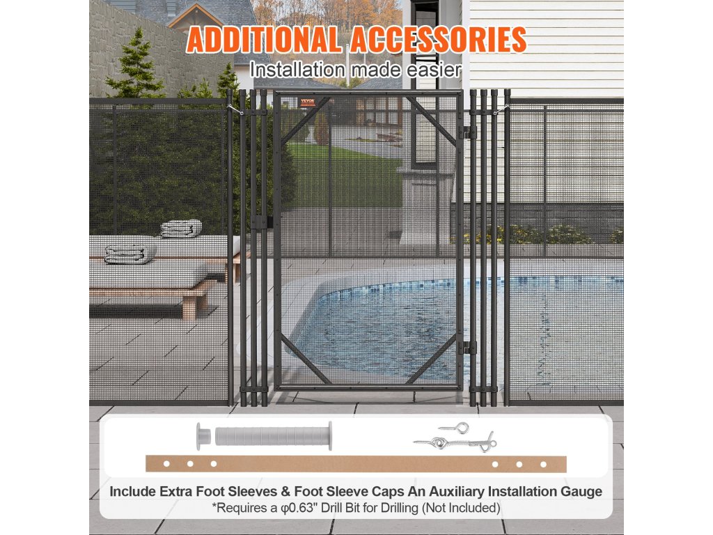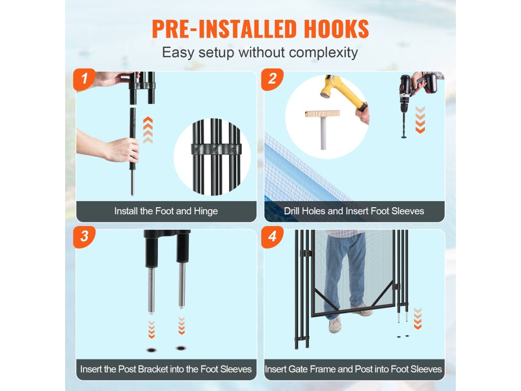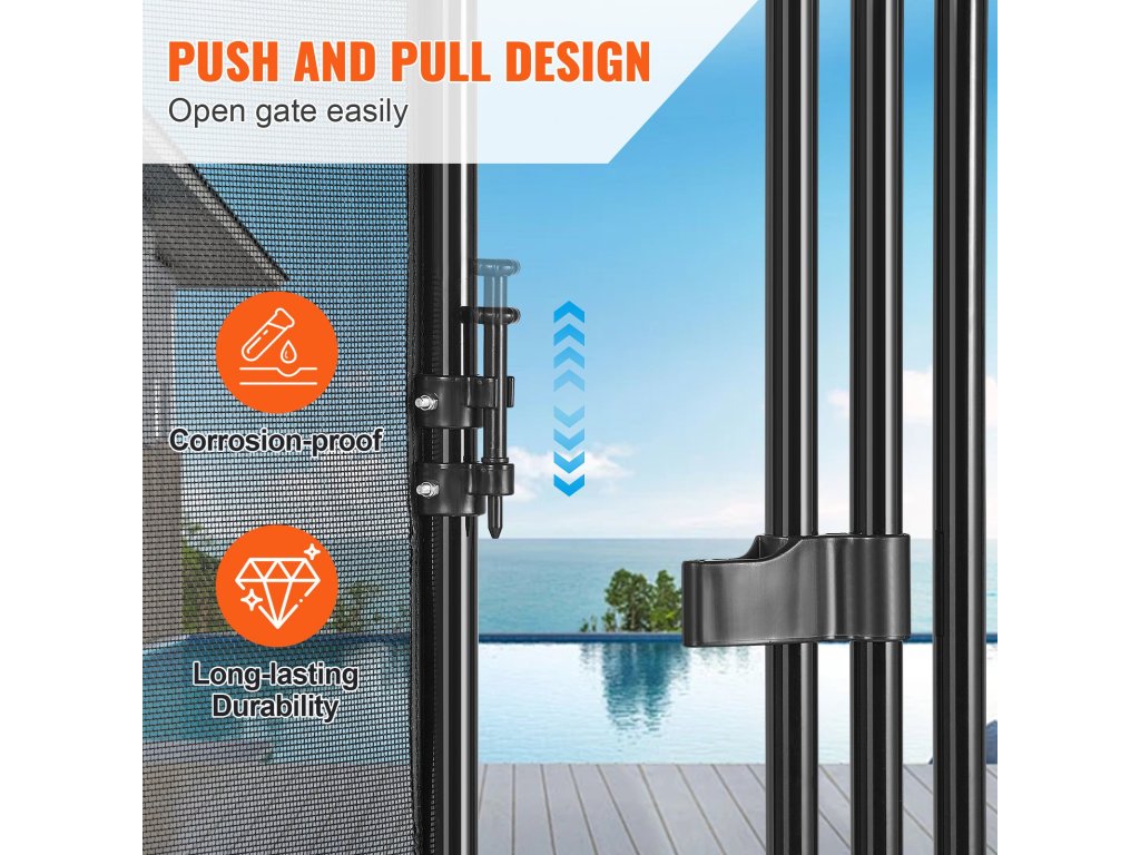 A levehető medencebiztonsági kapu lehetővé teszi, hogy a nem szakemberek is könnyen és gyorsan felszerelhessék, szétszerelhessék és tárolhassák. Különböző felületekhez alkalmas, beleértve a betont és a cementet is.