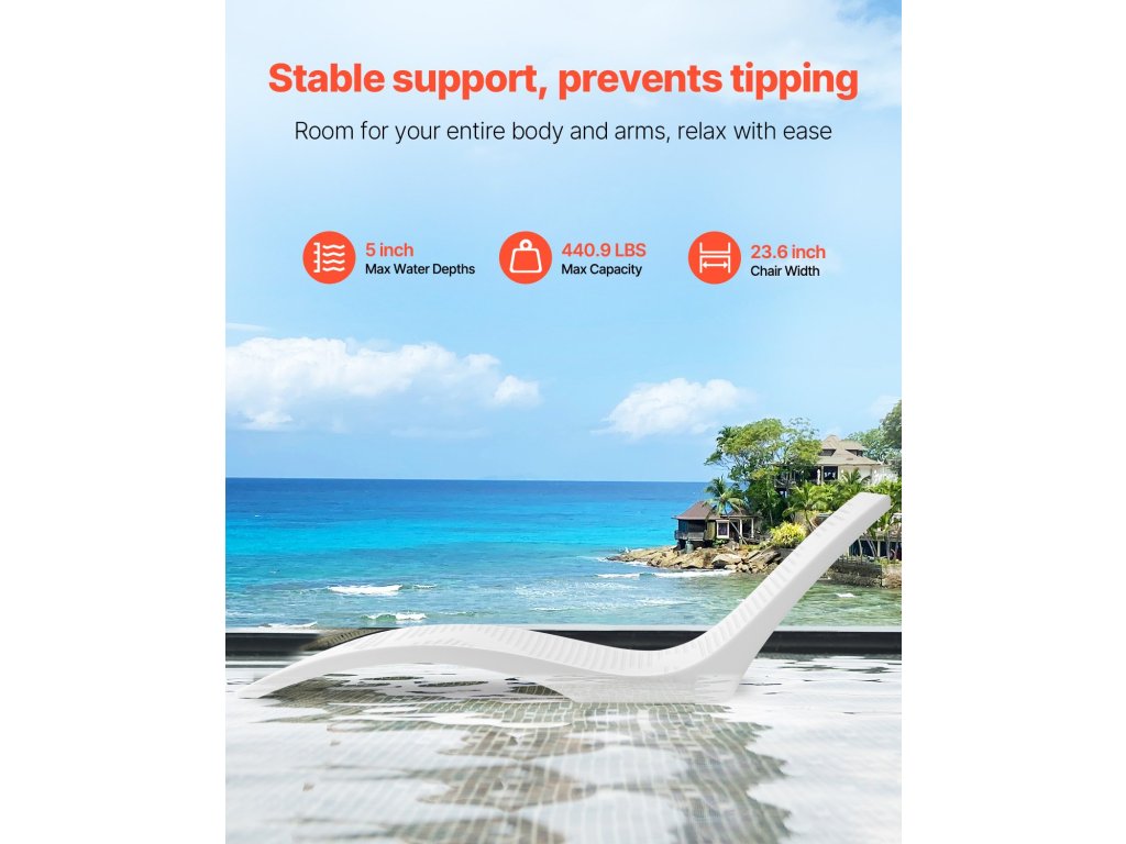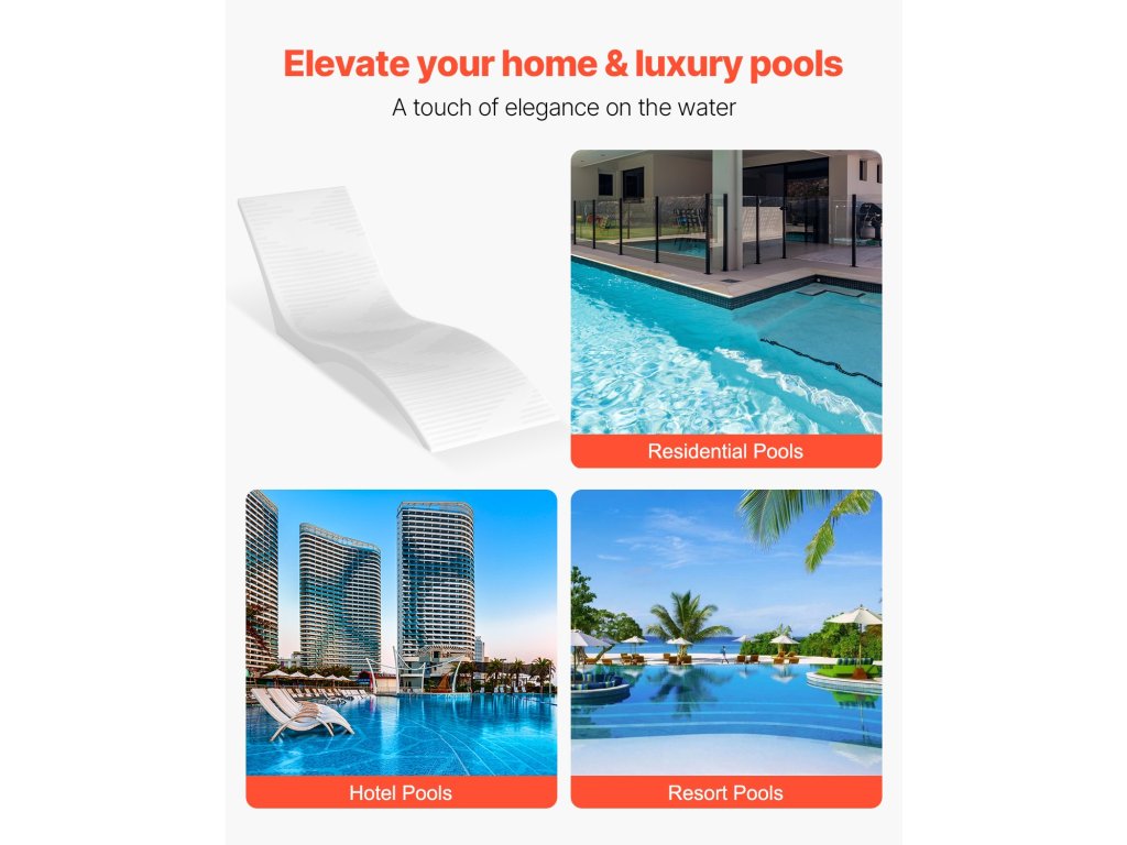 Készen állsz a nyárra? Ez a medencefotel S-alakú, hogy megtámassza a gerincét, így biztosítva a kényelmet, amikor laposan vagy az oldalán fekszik. Tartós, könnyen tisztítható PE anyagból készült, amely ellenáll a sárgulásnak és az öregedésnek. Stílusos kialakítása egyaránt illik a lakossági és a kereskedelmi medencékhez.