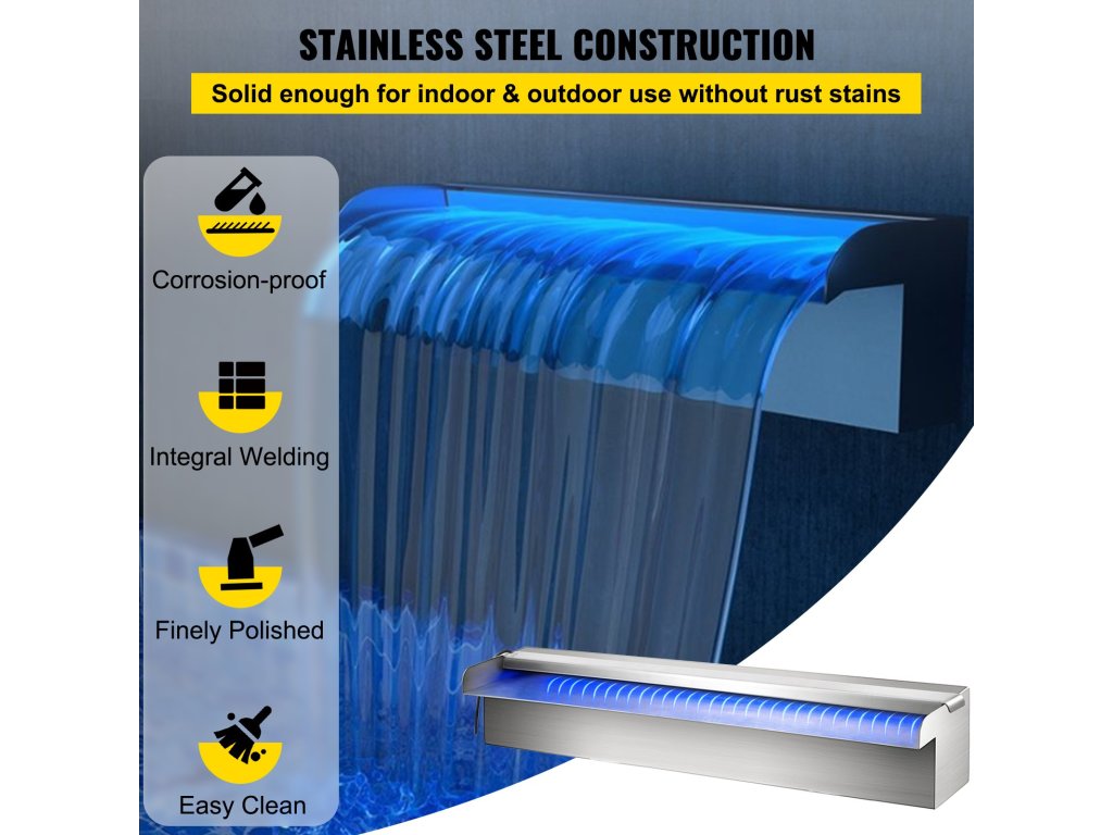 A vízeséses túlfolyó beépített hegesztéssel és szélesre nyitott kifolyóval rendelkezik, hogy a víz ne folyjon ki, így selymes, nyugodt vízesést hozva létre, amely megnyugtatja elméjét.