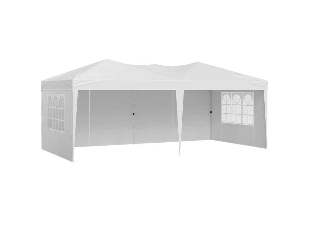 Ez a szabadtéri sátor két oldalfalú, mintás ablakokkal ellátott, amelyek biztosítják a magánélet védelmét, miközben elősegítik a jó szellőzést és javítják az általános esztétikát.