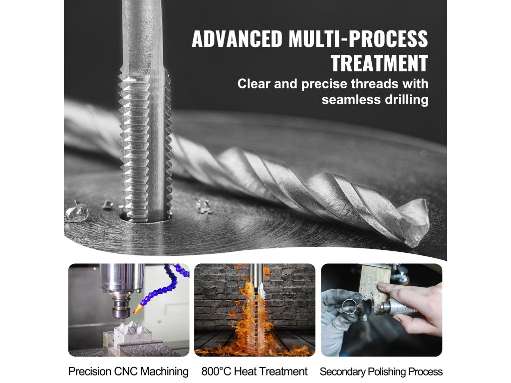Ez a csapoló készlet kemény csapágyazott acélból készült a páratlan tartósság és teljesítmény érdekében. A precíziós CNC megmunkálással és másodlagos polírozással ezek a szerszámok kiváló pontosságot biztosítanak. A hordozható tárolótáska biztonságos tárolást biztosít. Mondjon búcsút az inkonzisztens és hiányos meneteknek.