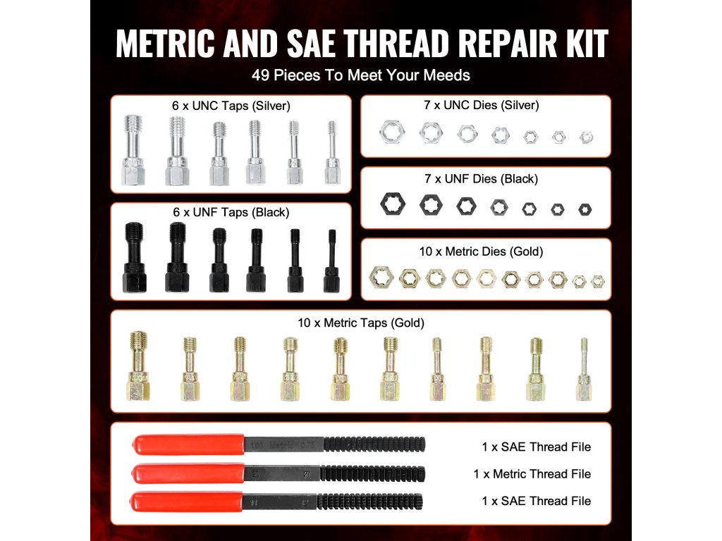 Menetjavító készlet 49 darabos unc/unf/m, 22 menetfúró/24 anya