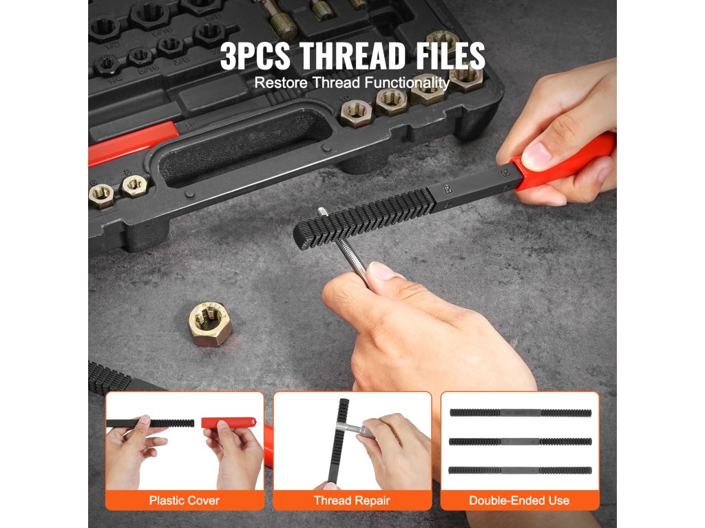 Ez a menethúzókészlet sokoldalú megoldás a különböző méretekkel a lecsupaszított vagy sérült belső menetek helyreállítására. Praktikus és hordozható, és tartósan készült. Többszöri használat után is kiváló eredményt biztosít, növelve a karbantartás hatékonyságát, így a javítási szakemberek számára nélkülözhetetlen.