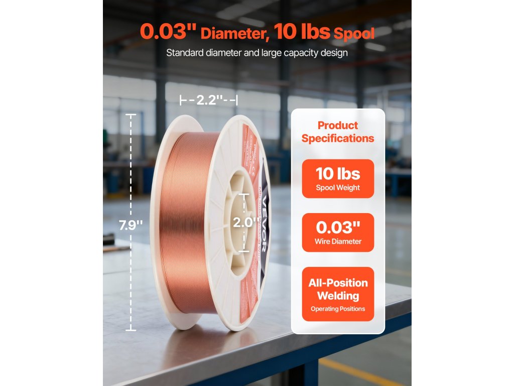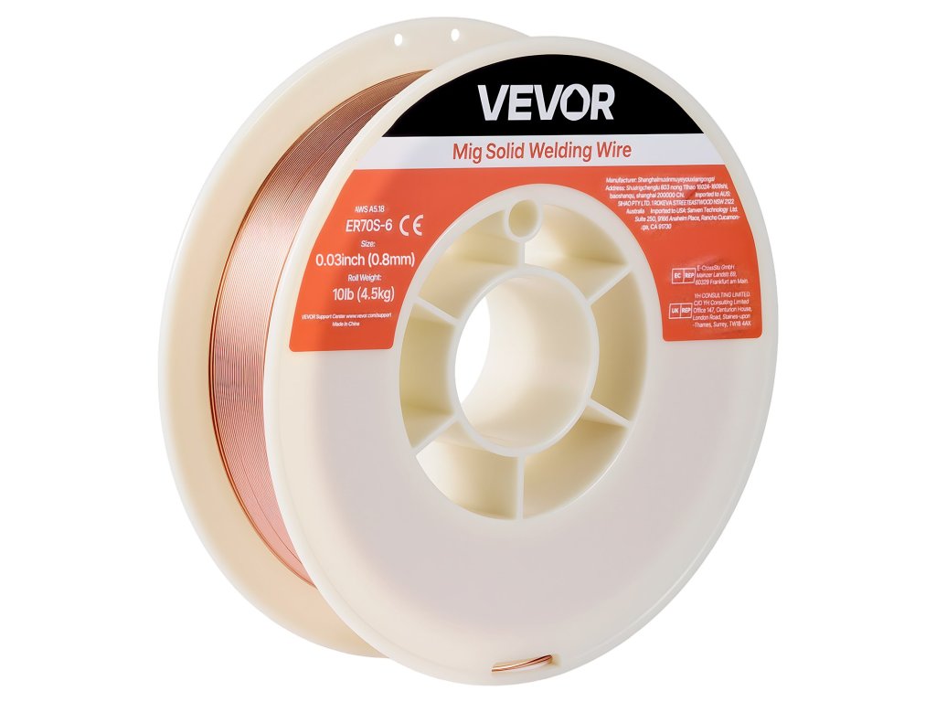 A MIG VEVOR 0,03" 10 lb ER70S-6 tömör hegesztőhuzal szoros és egyenletes hegesztési varratokat biztosít sima huzaltovábbítással, alacsony fröccsenéssel és stabil ívvel. Támogatja a hegesztést minden helyzetben, és nagy szakítószilárdsággal megbízható teljesítményt nyújt az autóipari, gépészeti és barkácshegesztési projektekben.