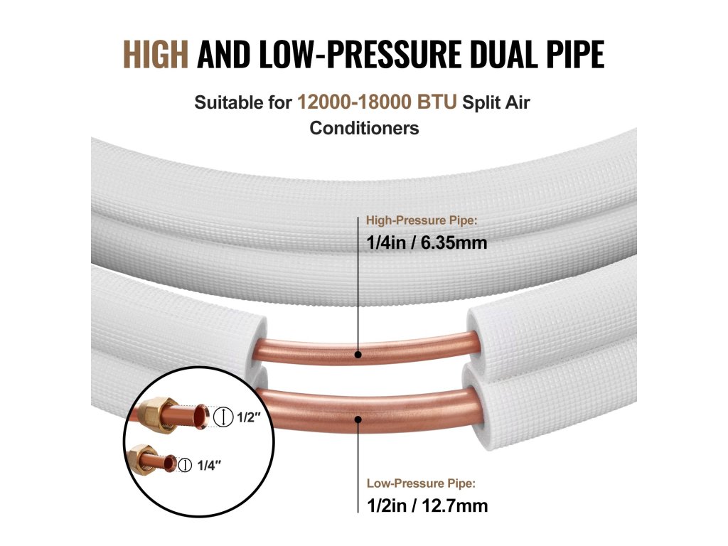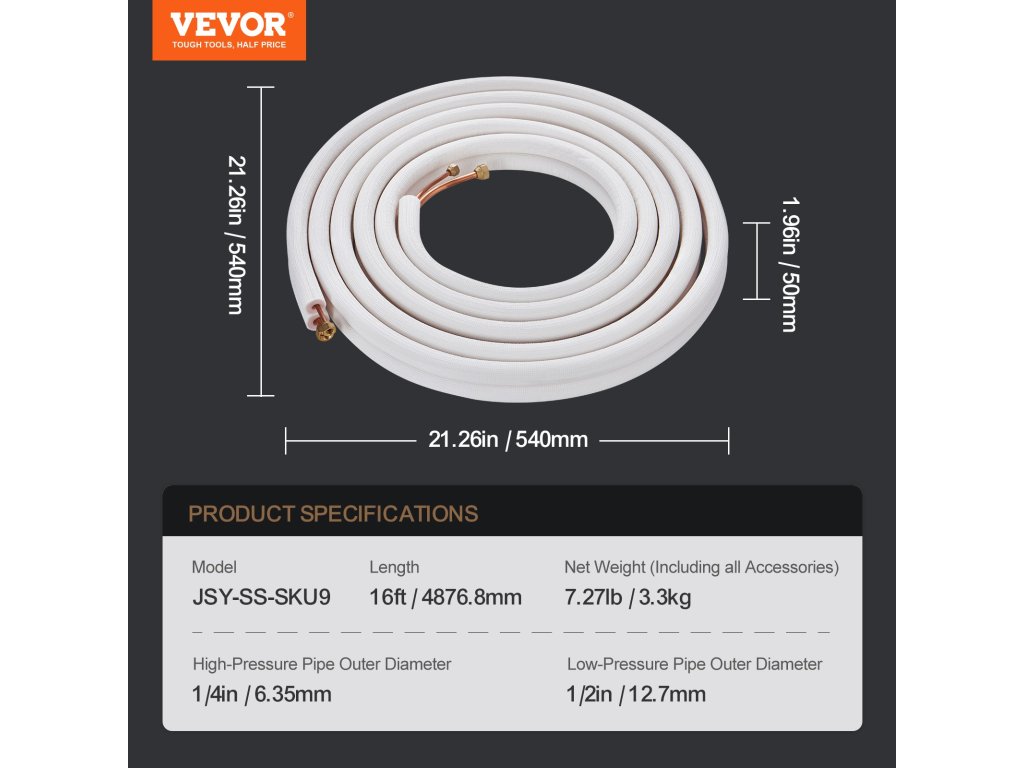 A belső rézcsövek jobb védelme érdekében a VEVOR a hagyományos kétrétegű szigetelőanyagokkal szemben háromrétegű szigetelőanyagokat használ a kiváló szigetelési tulajdonságok érdekében. A dombornyomott felületkezelés növeli a tartósságot és tagadhatatlan szilárdságot mutat.
