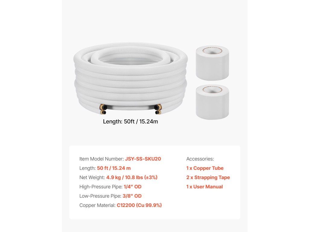 A készlet kompatibilis a mini-split légkondicionálókkal. A nagy tisztaságú csövek ellenállnak a kanyaroknál fellépő gyűrődéseknek és szivárgásoknak, így ideálisak az összetett szerelvényekhez, például garázsokban vagy műhelyekben. Szalaggal együtt szállítva - azonnal használatra kész a dobozból. Az egyszerű telepítéshez csak alapvető szerszámok szükségesek a beltéri és kültéri egységek csatlakoztatásához.
