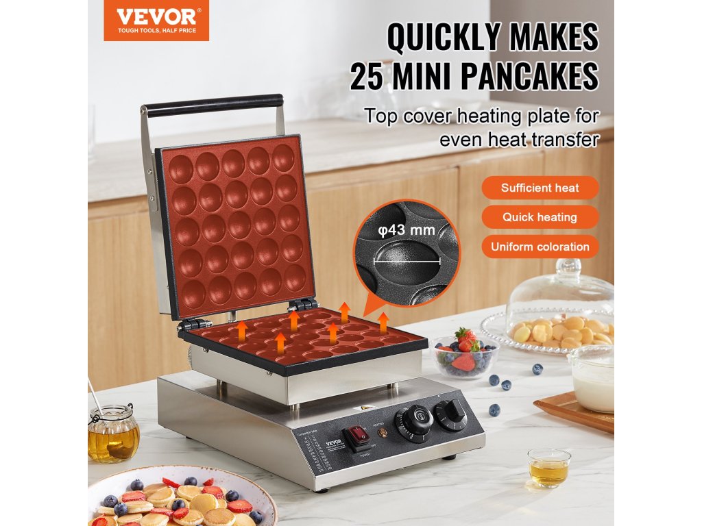 Mini stroj na poffertjes 25 ks 43 mm 1700 W nerez, temp. a čas