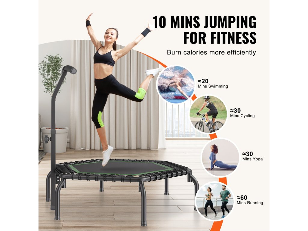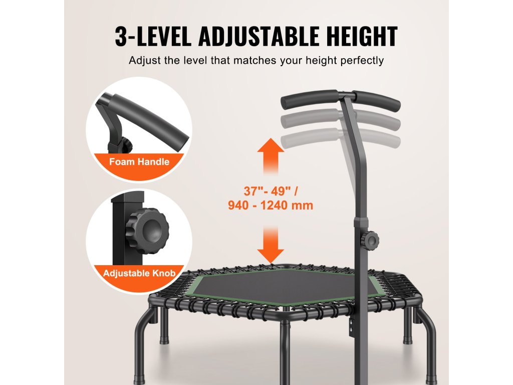 Az ideális ugrási magasságot a beltéri trambulin fogantyújával érheti el, amely 3 szintre állítható 37 és 49 hüvelyk között. Testre szabhatja a magasságot az Ön kényelméhez, és javíthatja edzésrutinját.