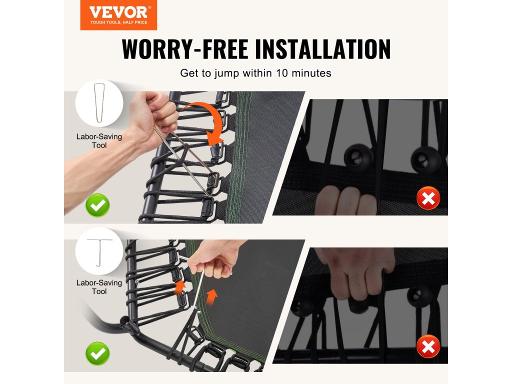 Ez a megerősített acélból és megerősített lábakból készült mini trambulin minden edzés során egyenletes és megbízható teljesítményt garantál.
