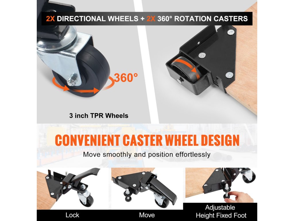 Elege van abból, hogy csak azért izzad, hogy mozgatni tudja a felszerelését? Sokoldalú mobil alapunk kerekekkel rendelkezik - zárral! Pattintsa őket a helyükre anélkül, hogy lehajolna.