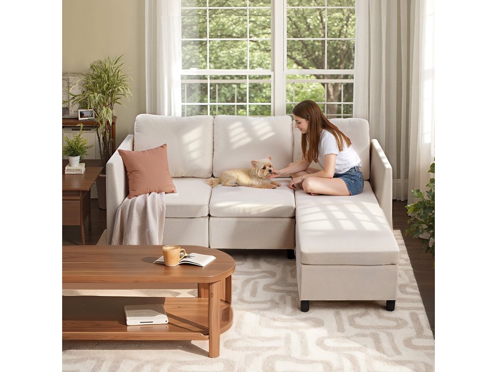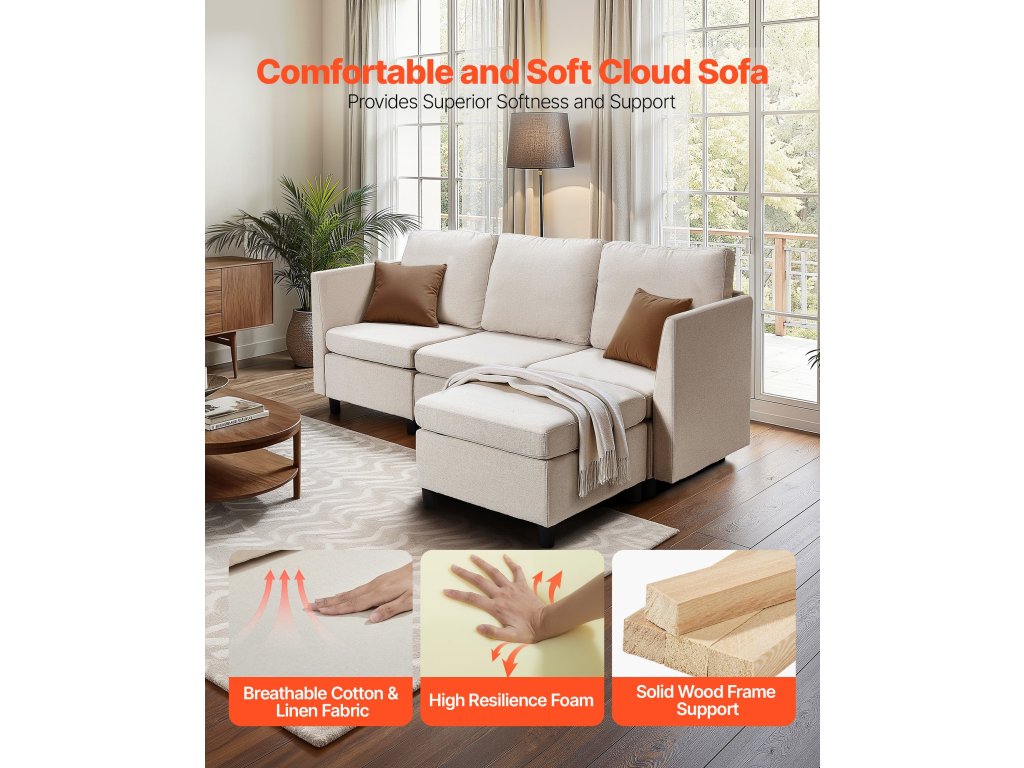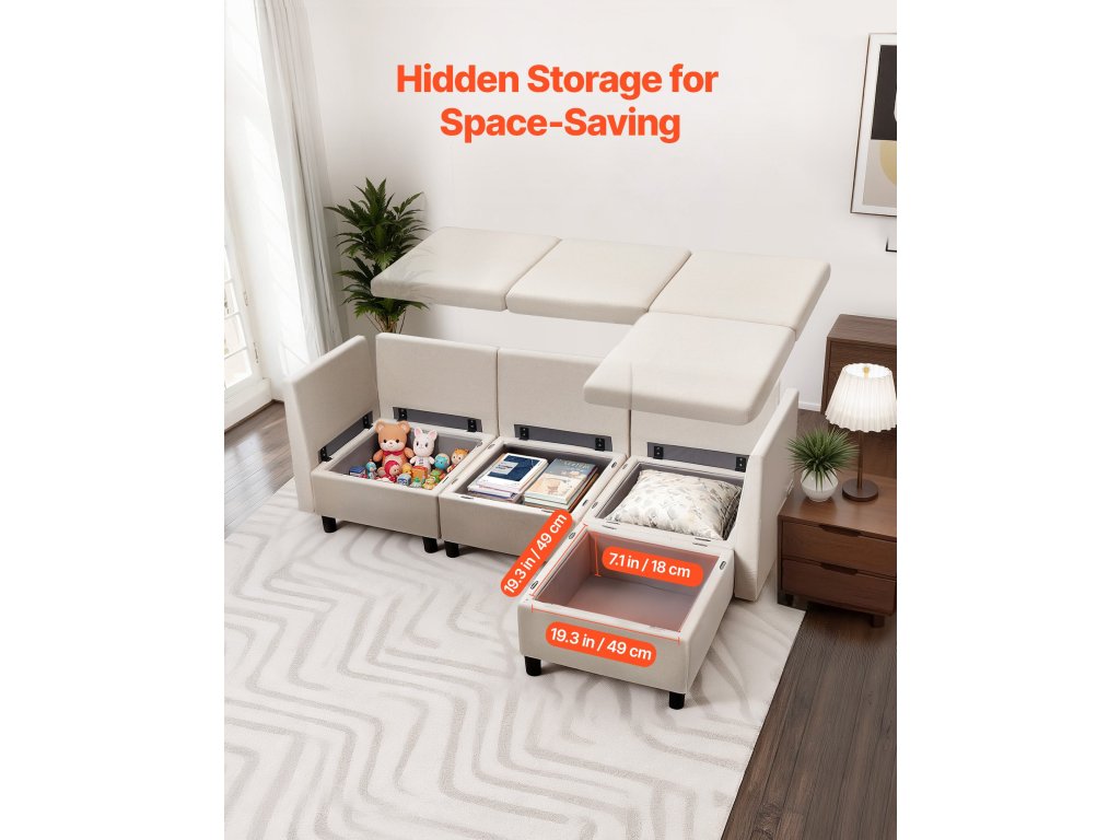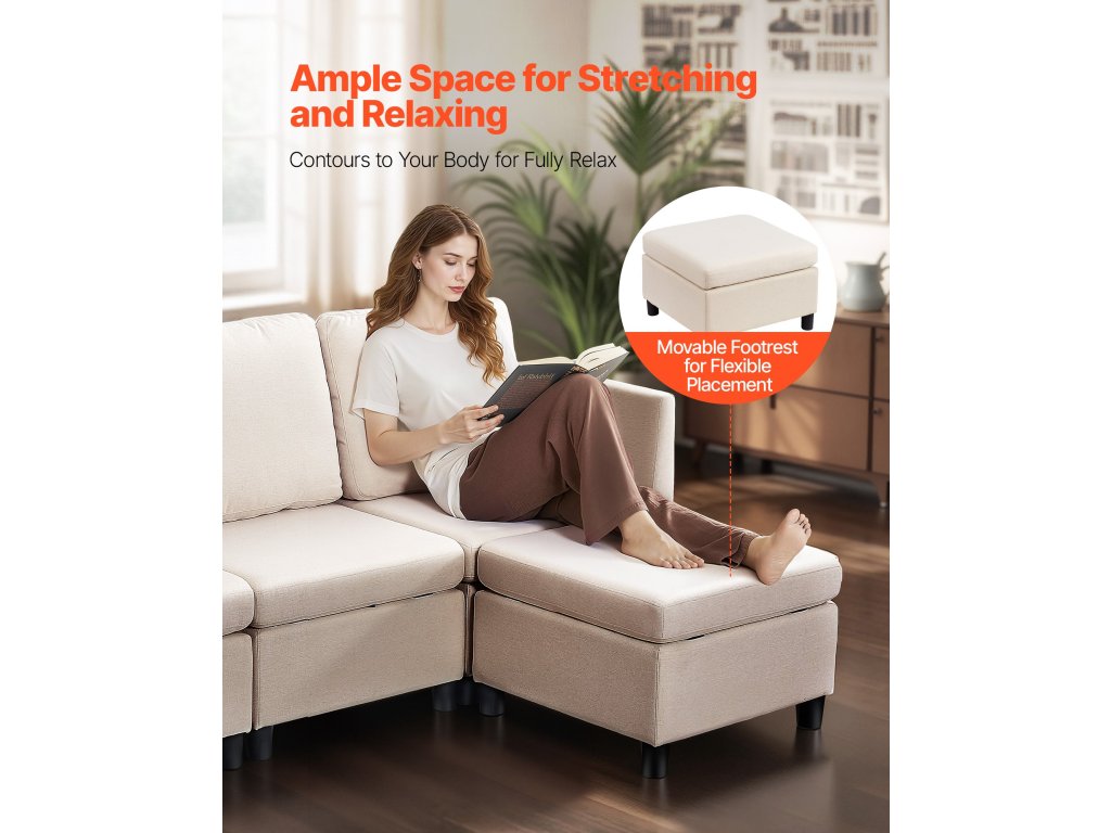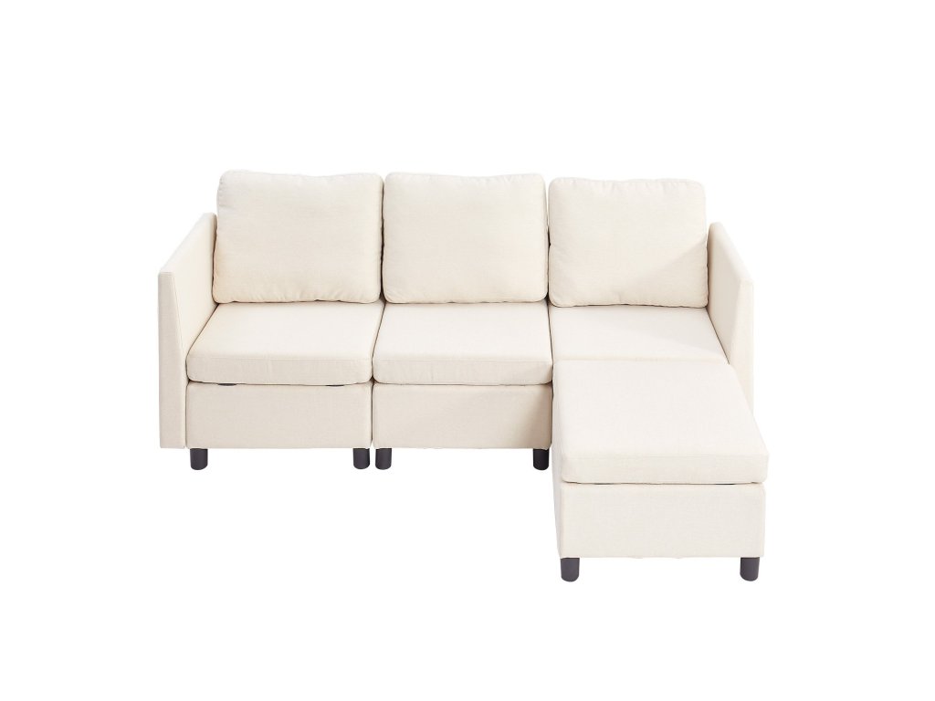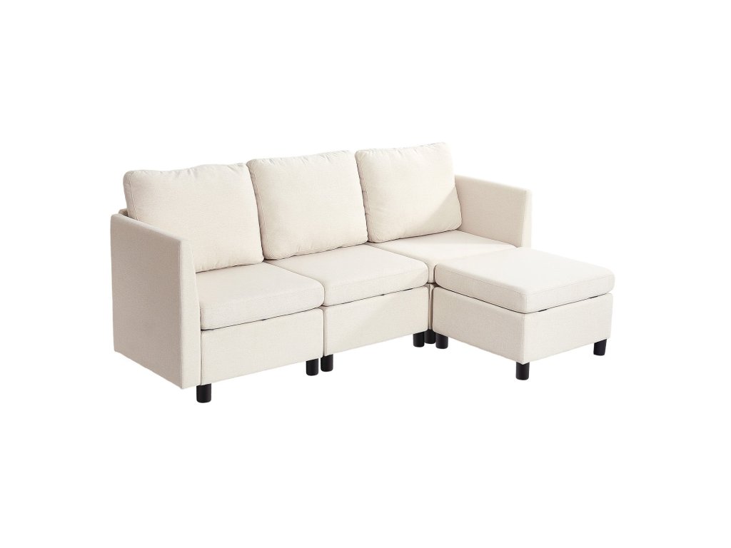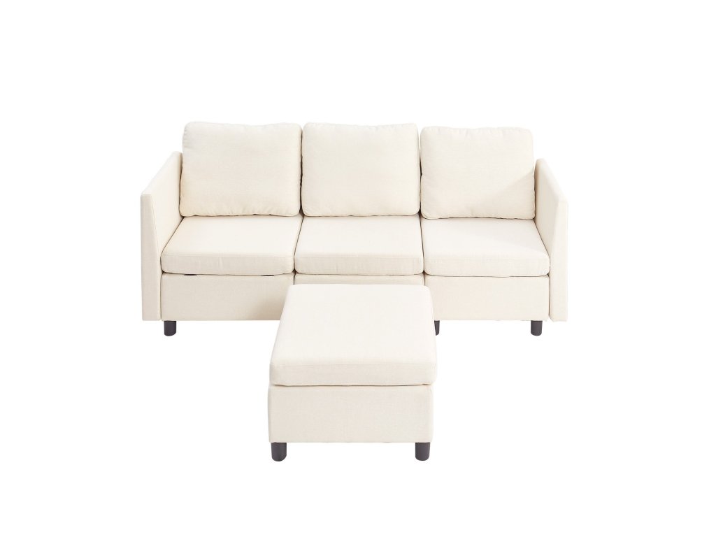 Moduláris 3 személyes kanapé tárolóval és lábtartóval, bézs