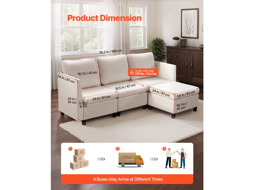 Ez a moduláris kanapé rendkívül tartós habszivaccsal és lélegző pamutszövettel gazdagítja nappali garnitúráját a hosszan tartó kényelem érdekében. A beépített üléstároló helyet takarít meg, miközben praktikus stílust kölcsönöz otthonának.