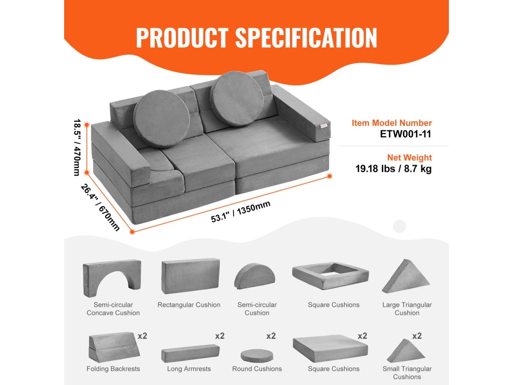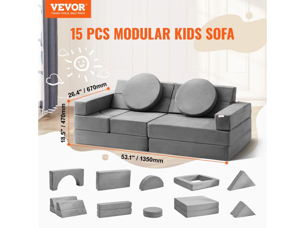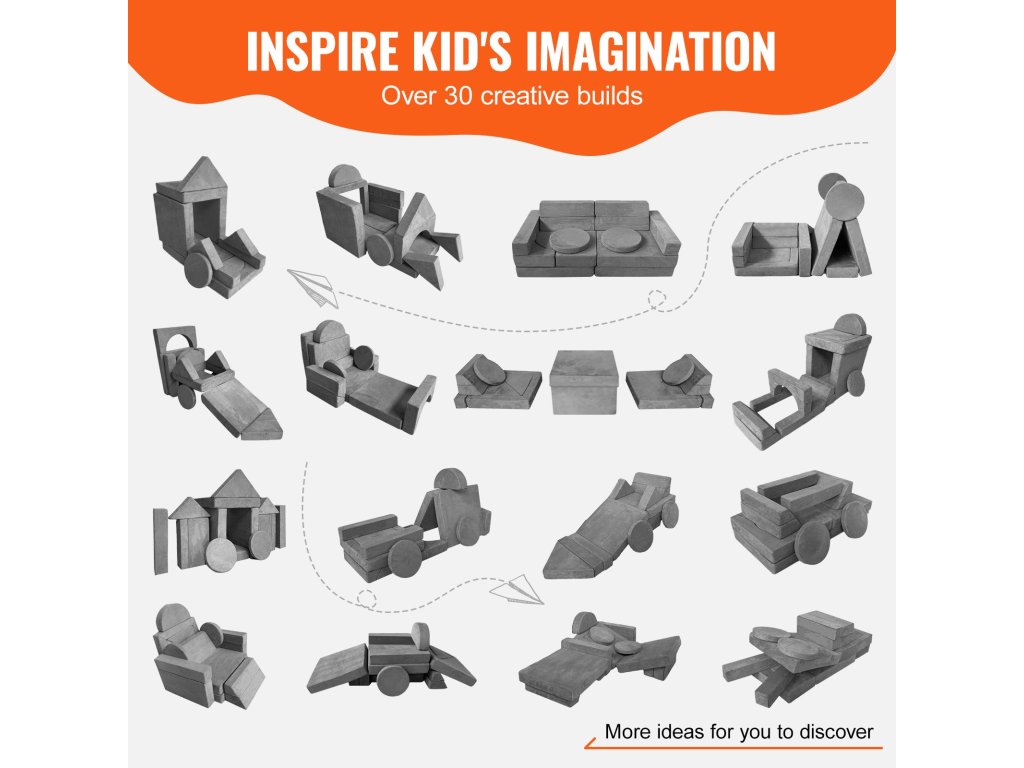 Míg a legtöbb gyerekeknek szánt játékkanapé készlet körülbelül 10 darabot kínál, mi 15-öt vettünk bele. Ezek között négyzeteket, téglalapokat és olyan izgalmas kiegészítőket találsz, mint a félkörök és háromszögek. Ezzel a 15 alkatrésszel gyermeke több mint 30 különböző modellt építhet, ami kreativitásra és felfedezésre ösztönöz.