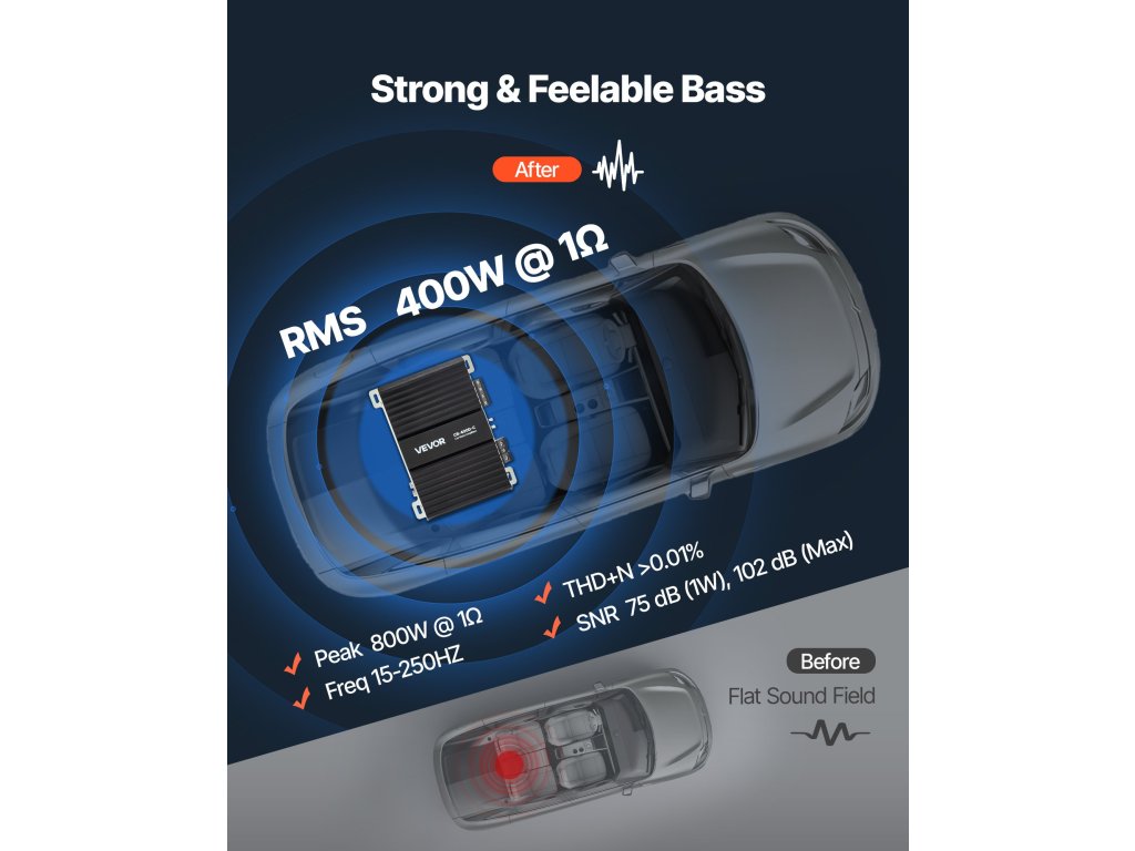 Autóerősítőnk nagymértékben kompatibilis a szedánokkal, SUV-okkal, teherautókkal és lakóautókkal. Széles feszültségbemenetével és állítható bemeneti szintjével zökkenőmentesen csatlakozik az audio rendszeréhez, legyen szó RCA-kimenetekkel ellátott csúcskategóriás fejegységről vagy egyszerűsített változatról.