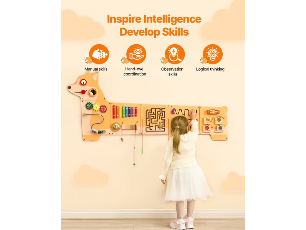 Ösztönözze gyermeke kíváncsiságát és tanulását ezzel a Montessori-ihlette aktivitási falpanellel! Tevékenységi falpanelünk felfedezésre és szórakozásra ösztönöz a multiszenzoros játékon keresztül, amely tökéletes a fiatal elmék fejlesztéséhez.