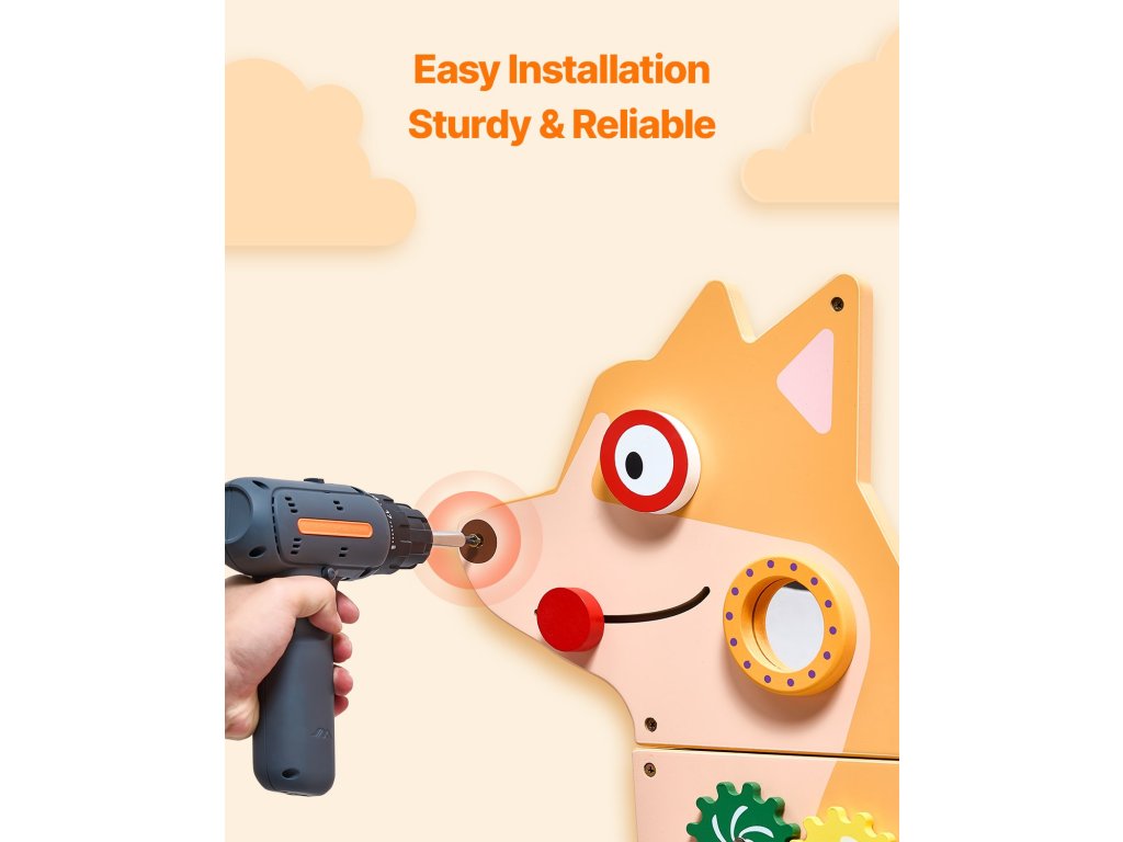 Ez a vastag MDF-lapból készült foglalatossági fali panel tartósabb, mint a műanyag, és úgy készült, hogy évekig kitartson a játékban, és együtt nőjön gyermekével anélkül, hogy könnyen eltörne vagy kifakulna.