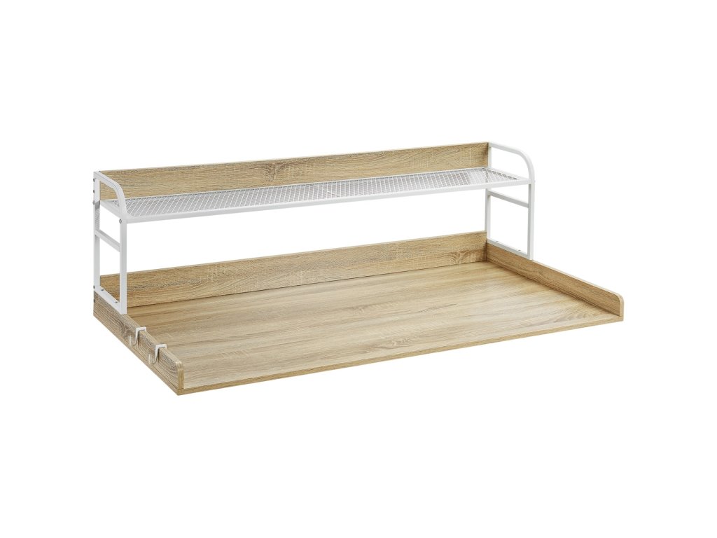 A kiváló minőségű P2 CARB fából készült, 15 mm vastag felülettel rendelkező, barátságos anyag hő-, víz- és karcálló, és akár 250 kg-ot is elbír. A kisebb tárgyak felakasztására szolgáló praktikus oldalsó kampókkal felszerelve úgy készült, hogy ellenálljon a mindennapi használatnak és hosszú távú stabilitást biztosítson.