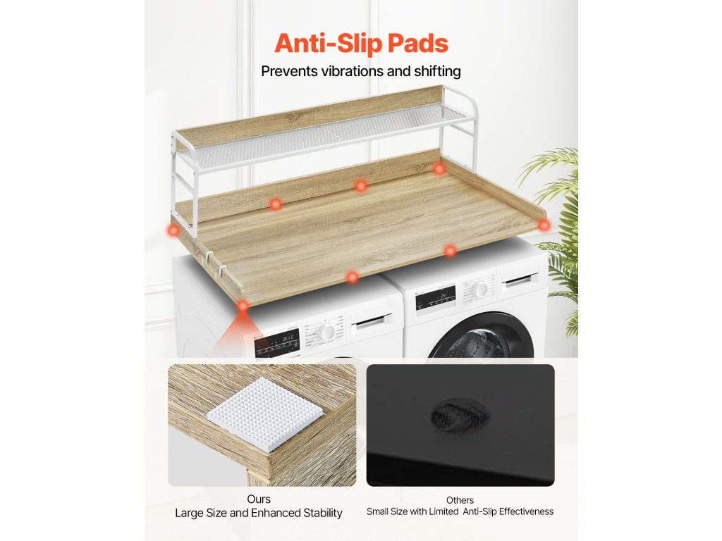 Mosó- és szárítógép állvány 2 polccal, 137×73 cm, tölgyfa, csúszásmentes