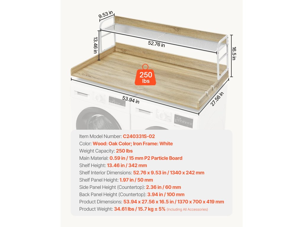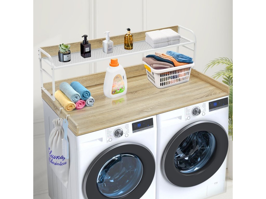 Ez a mosó- és szárítógép-pult 54 hüvelyk széles és 27 hüvelyk mély, így tágas munkaterületet biztosít a mosókonyha számára. Akár ruhákat hajtogat, akár tárgyakat válogat, vagy mosodai kellékeket tárol, ez a nagy felület minden igényt kielégít.