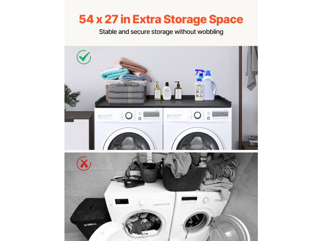 Ez a mosó- és szárítógép-pult 54 hüvelyk széles és 27 hüvelyk mély, így tágas munkaterületet biztosít a mosókonyha számára. Akár ruhákat hajtogat, akár tárgyakat válogat, vagy mosodai kellékeket tárol, ez a nagy felület minden igényt kielégít.