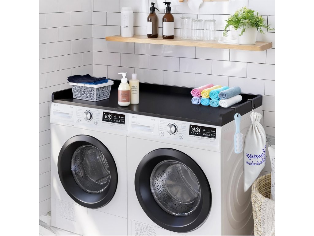 Mosó- és szárítógép munkalap 137 cm × 69 cm, fa, vízálló, fekete