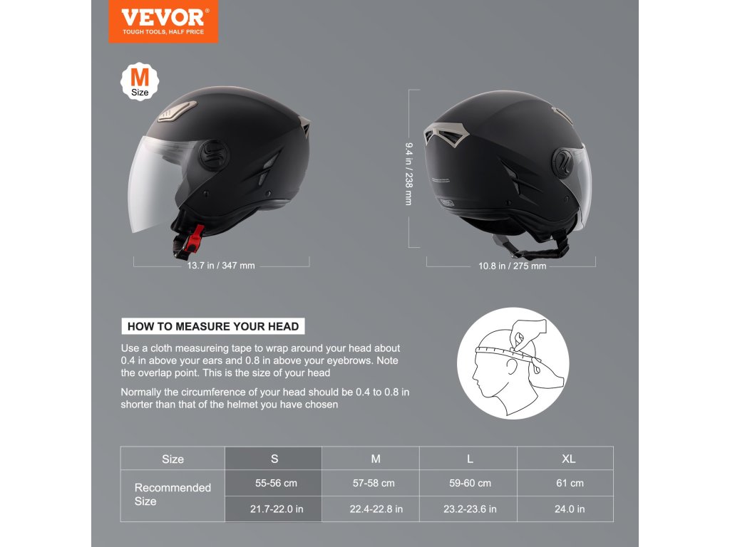| Méret | sisak 3/4-es arccal - S méret |