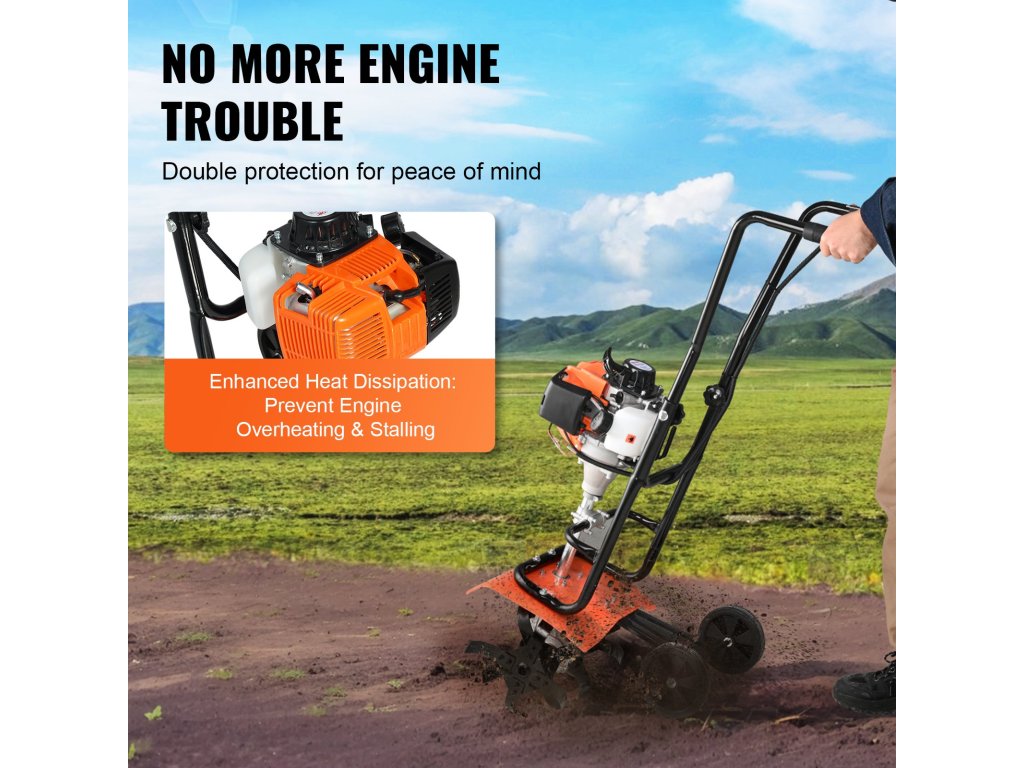 Kultivátorunk kiváló minőségű anyagokból készül, és garantálja a hosszú távú és hatékony talajművelést. A jobb hőelvezetés megakadályozza a túlmelegedést, a légszűrő megakadályozza a motort károsító szennyeződések bejutását, az alumíniumötvözetből készült hajtómű pedig korrózióálló a hosszabb élettartam érdekében.