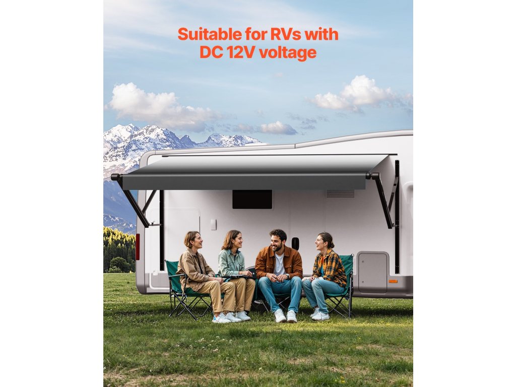 Motoros napellenző lakókocsihoz, komplett 10 lábas, kihúzható, alumínium kerettel, fekete