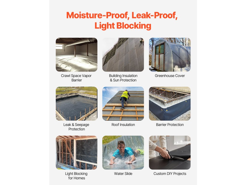 Ez a 6 milliméter vastag műanyag fólia ellenáll a szakadásnak a terhelés hatására. A nagyméretű, 10×100 láb méretű fólia széles lefedettséget biztosít bármilyen projekthez. A fekete fólia hatékonyan blokkolja a napfényt, hogy megakadályozza a gyomok növekedését, miközben időjárásálló. Ideális gyomirtáshoz, kerítésvédelemhez, szigeteléshez.