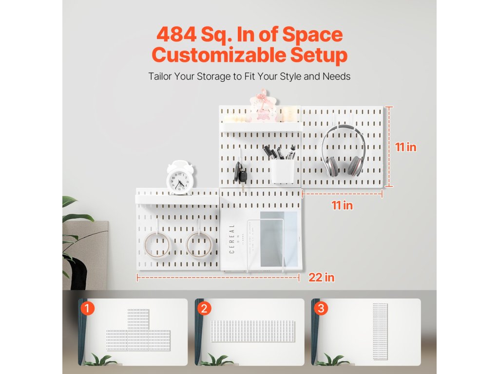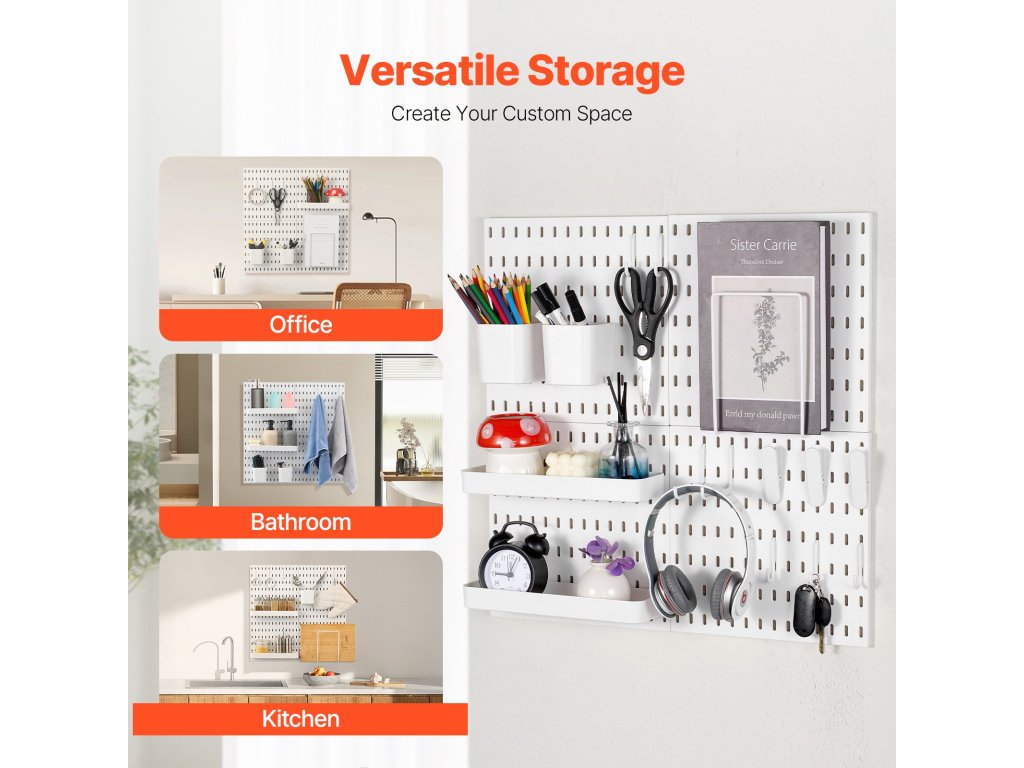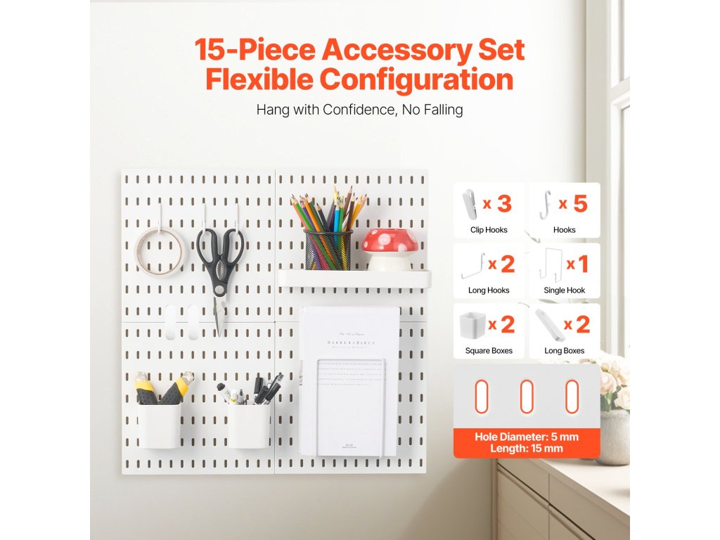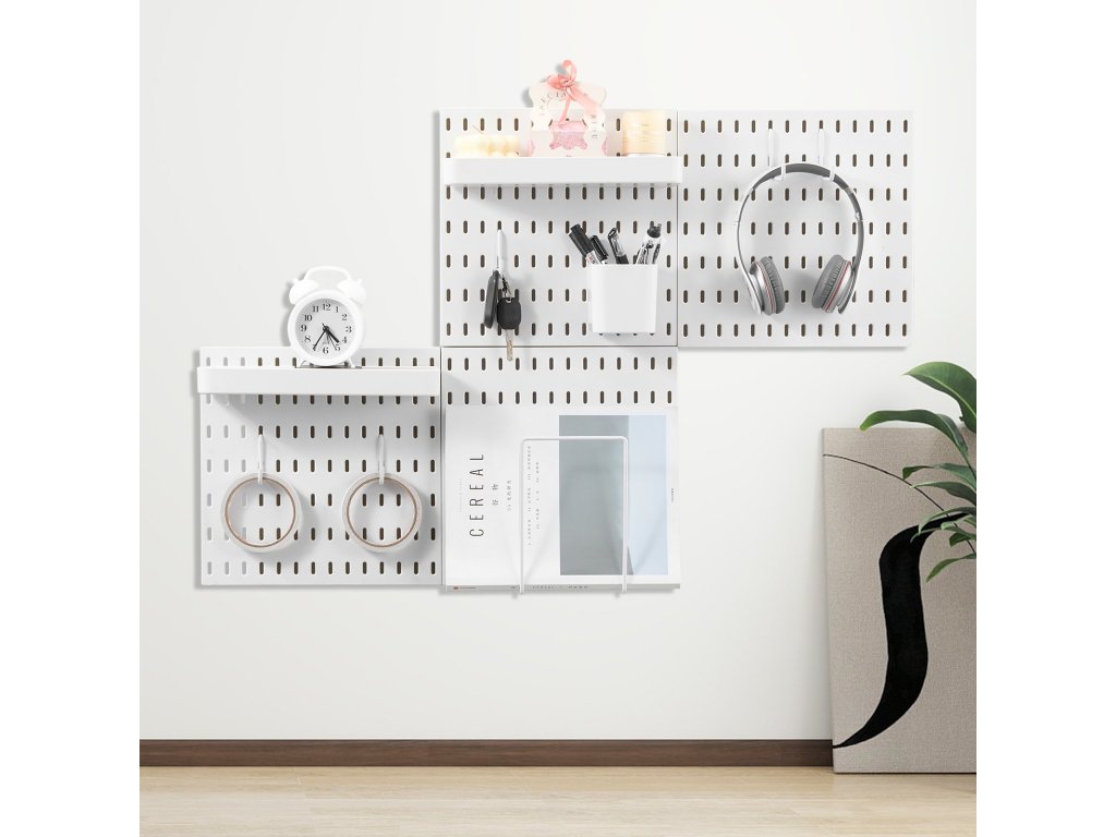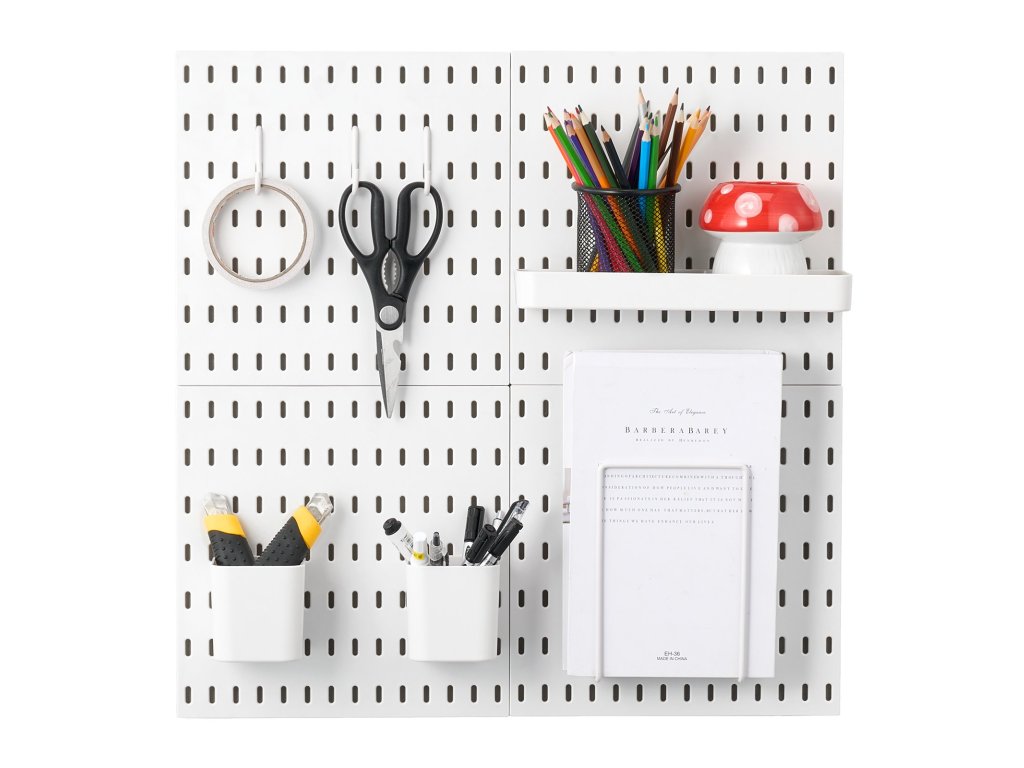Műanyag lyukacsos fali tábla készlet 28 cm × 28 cm 4 panellel, kiegészítőkkel, fehér