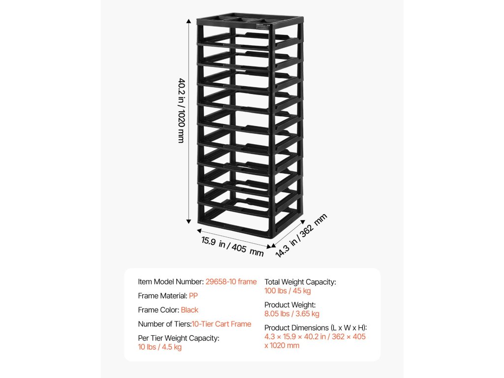 | Počet úrovní | 10-úrovňový rám vozíka |