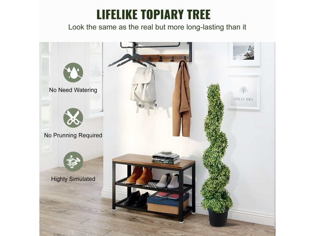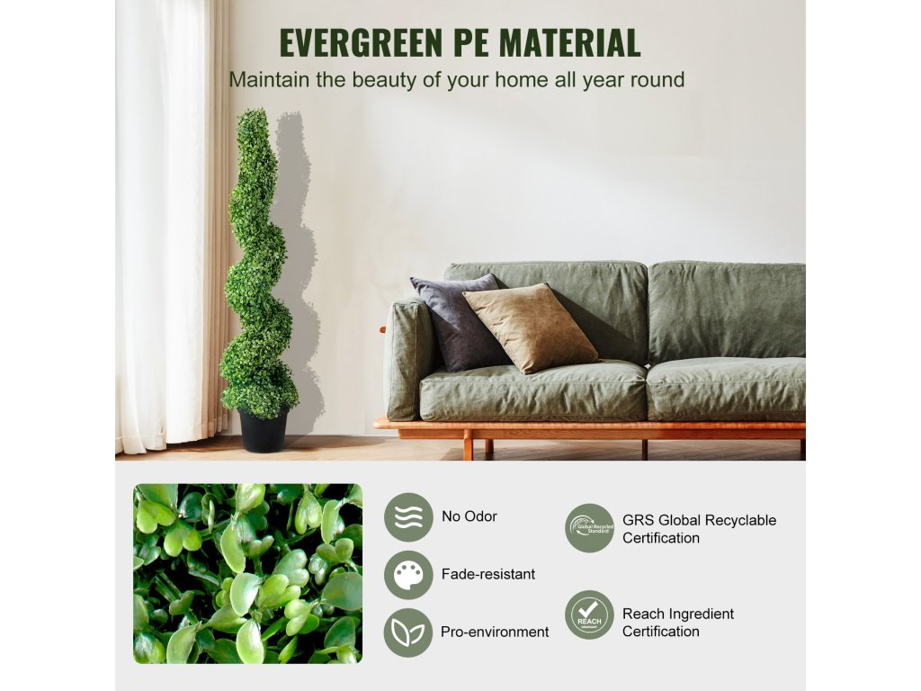 A spirál alakú, lépcsőzetes levelekkel és több réteggel rendelkező mesterséges topikfák teljes és buja megjelenéssel büszkélkedhetnek. A sűrű lombozat bőséges lefedettséget biztosít, élénk és fényűző megjelenést biztosítva, amely minden térbe zöldet és életerőt visz.