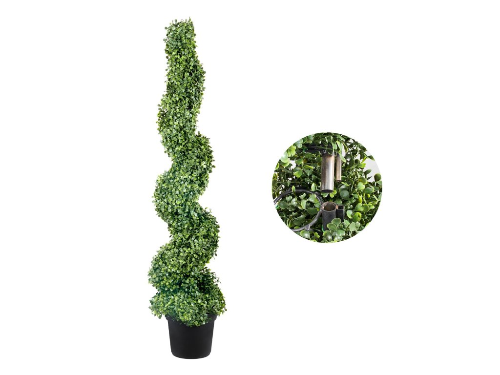 A precizitással és a részletekre való odafigyeléssel készült műnövény topiárium buja zölddel és jellegzetes formákkal büszkélkedhet. A masszív konstrukció lehetővé teszi, hogy ellenálljon az UV-sugaraknak és a különböző időjárási körülményeknek, garantálva a hosszan tartó szépséget.