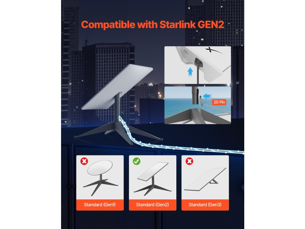 Ez a Starlink kábel a V2 négyszögletes szabványhoz készült. A 20 tűs csatlakozónak köszönhetően nem kell módosítani. 24 AWG rézmaggal és fém árnyékolással rendelkezik, és 1200 Mbps sebességig támogatja a sebességet. Tartós PVC köpenye ideális hosszú távú kábelezéshez és kertben, lakókocsiban, tetőn, kempingben való használatra.