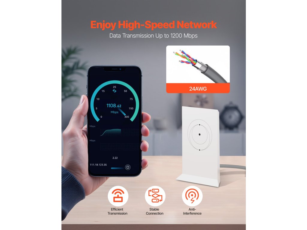Ez a Starlink kábel CAT6 szabványú, 24 AWG tiszta rézmaggal és fém árnyékolással a kiváló interferenciavédelem érdekében. Akár 1200 Mbps sebességet is biztosít, így több eszköz csatlakoztatása esetén is zökkenőmentes teljesítményt nyújt. Megbízható társ streaminghez, játékhoz vagy távmunkához.