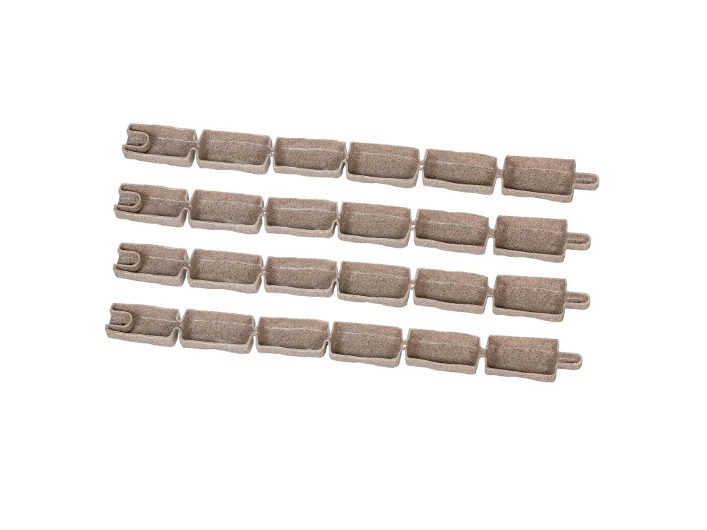 Műkő szegély 117,4×6,5 cm, rugalmas, csapokkal, barna