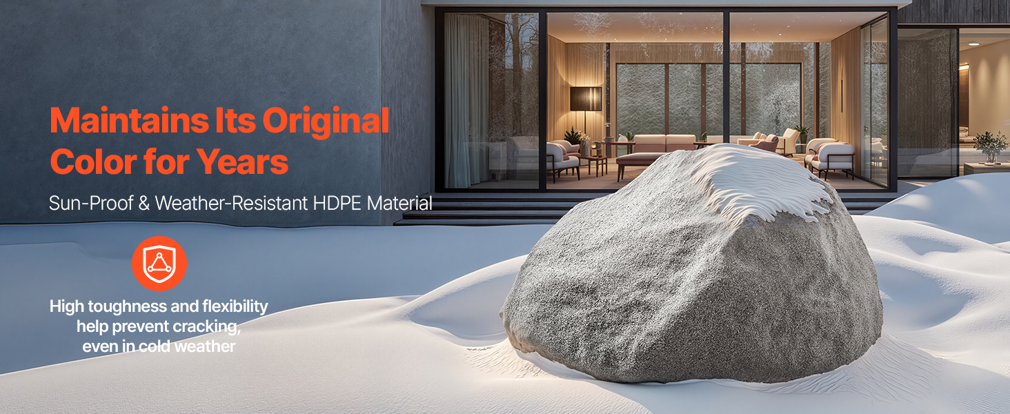 Ez a műborítás könnyű polietilénből készült, így egy személy könnyedén felemelheti és mozgathatja. Helyzete szabadon beállítható az évszaknak vagy a helyi igényeknek megfelelően, így univerzálisan elhelyezhető.